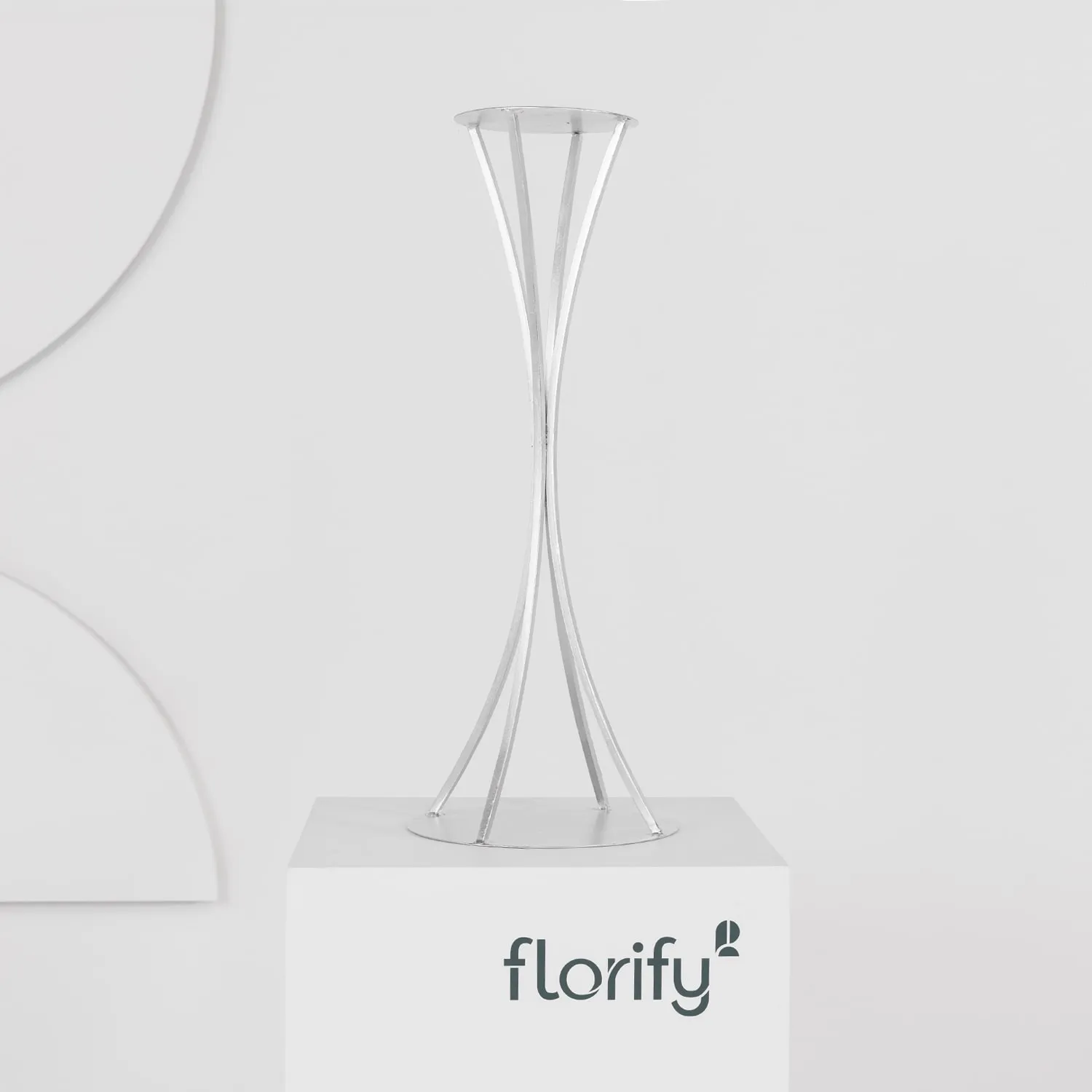 Our silver curved metal column stand is the perfect pairing for our floral centrepieces. Designed for both fresh and artificial arrangements, its sturdy yet elegant frame adds height and impact to event decor. Whether placed in the centre of a guest table, lining the aisle, or enhancing the backdrop of stands or cakes, this stand brings an extra element of height. Suitable for both our 50cm and 70cm centrepieces.