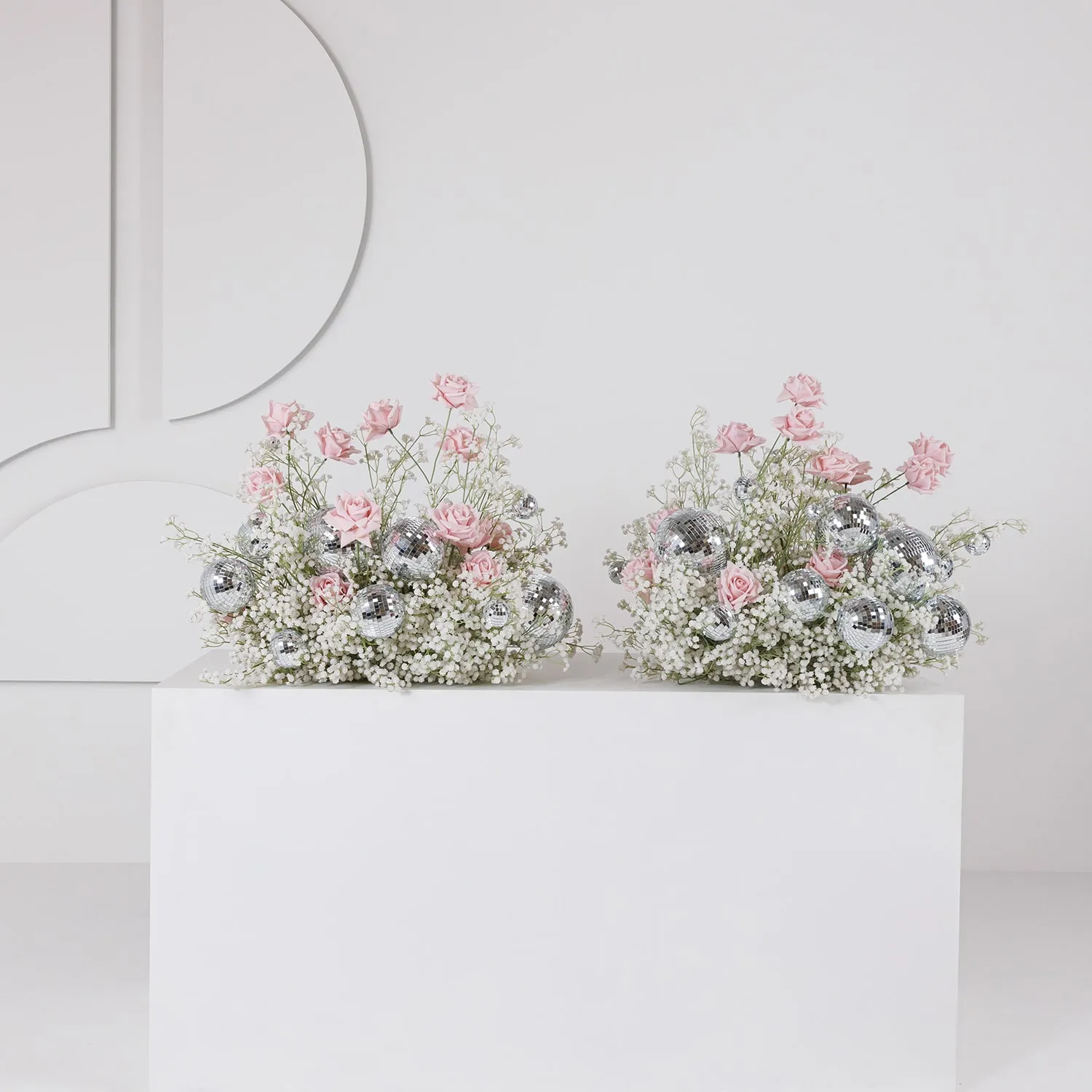 This collection creates a soft, dreamy atmosphere with a hint of sparkle. The combination of dusky pink tones, gypsophila, and disco balls adds a modern, chic feel that transforms any space with subtle glamour.