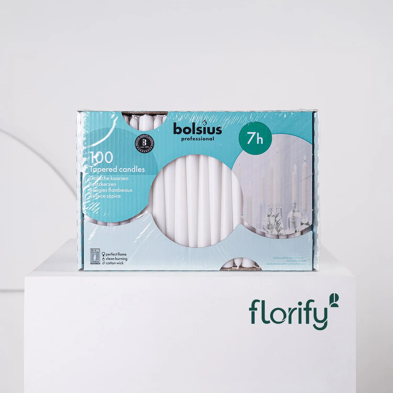 A classic choice for elegant settings, this pack of 100 Bolsius Tapered Dinner Candles (25.4cm) offers clean, long-lasting burn—ideal for restaurants, events, and romantic dining.