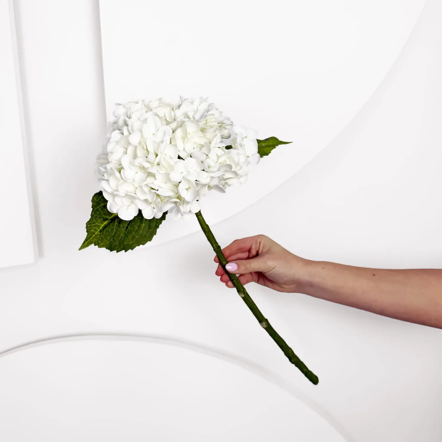 An ivory hydrangea stem with a real touch finish, 51cm in length. Works well for full arrangements, softening larger designs, or pairing with other statement stems.