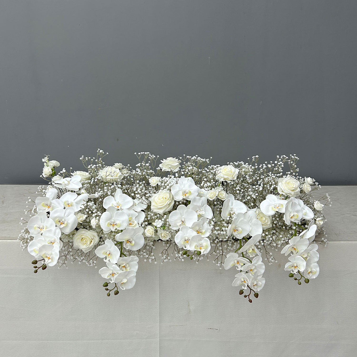 This collection brings a light, serene atmosphere to any space. The mix of soft whites and gentle ivory tones creates a clean, elegant look, while the orchids add a subtle touch of sophistication. It feels airy, polished, and beautifully balanced, ideal for any event that leans towards a fresh, timeless style.
