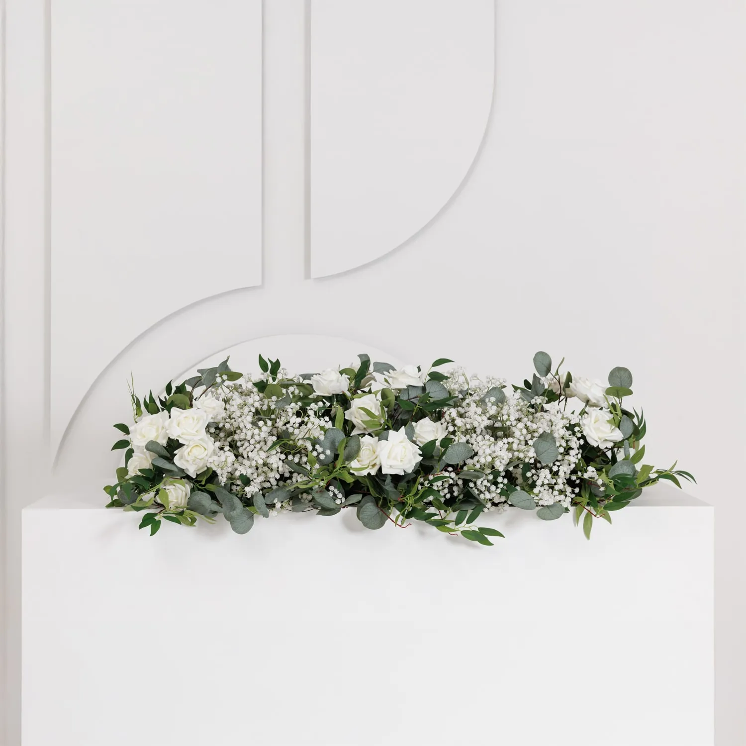 The Hamptons collection takes inspiration from clean, refined styling. Real-touch white roses, gypsophila, eucalyptus, and layered greenery create a crisp, modern look with timeless appeal.