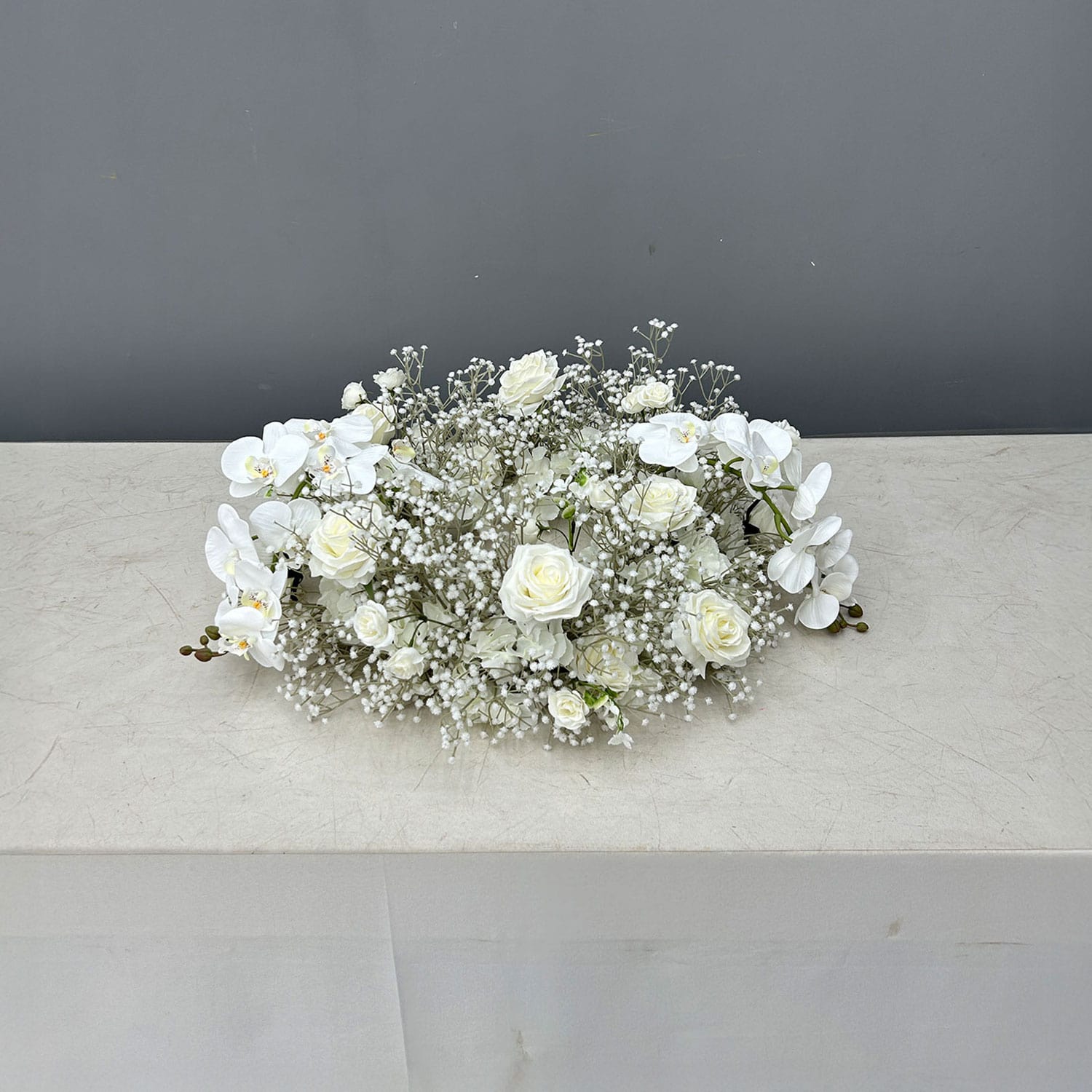 This collection brings a light, serene atmosphere to any space. The mix of soft whites and gentle ivory tones creates a clean, elegant look, while the orchids add a subtle touch of sophistication. It feels airy, polished, and beautifully balanced, ideal for any event that leans towards a fresh, timeless style.