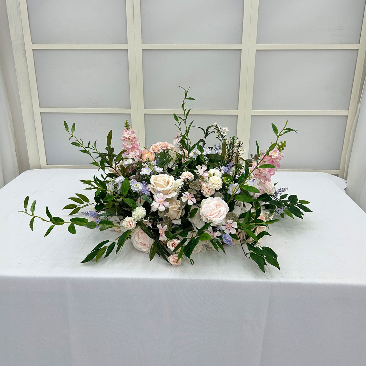 This collection brings a whimsical, dreamy atmosphere to any space. The tall delphiniums add graceful height, while the pastel palette keeps everything soft and uplifting. The mix of florals and flowing greenery gives the arrangement a period-inspired charm with a relaxed, organic feel. It’s elegant, airy, and full of character.